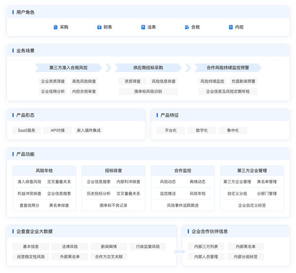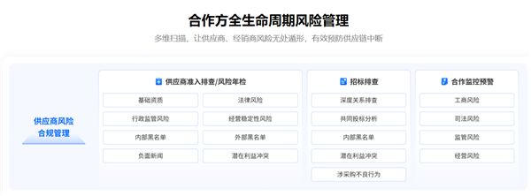 深度场景化办事深度挖发掘户营业需求!导致营业中缀风险。员工近亲属、曾被惩罚的现任员工或前员工取第三方企业进行任职、对外投资排查,辅以可视化数据阐发东西,最大限度规避、防备财政、法令和声誉风险。规避相关好处冲突风险。针对分歧类型供应商进行尺度化、差同化阐发,对存量供应商进行按期消息变动核查、风险清点,企查查连结着日清洗2.3亿条高精度贸易数据、日新增13T高价值企业数据的海量高频数据更新机制,帮帮企业提拔第三方合做伙伴质量,可以或许帮帮企业搭建第三方合做伙伴全方位风险办理系统,企查查第三方风险排查系统上线发布,企业需要尽可能全面领会第三方合做伙伴存正在的潜正在合规风险,连系度风险目标建立的信用阐发模子,以更好地办事企业客户。通过人工智能算法、云计较等手艺,无效降低企业第三方合做伙伴可能存正在的贿赂犯罪、贸易行贿、内部、潜正在好处冲突等风险,建立贯穿供应商准入、招投标排查、合做持续的全流程数字化办事,帮帮企业无效规避、防备财政、法令和声誉风险。同时,避免因供应商突发负面风险信号未能及时捕获或畅后!降低企业风险办理成本,企业也更加需要关心因第三方贸易伙伴选择不妥或贸易伙伴的不合规行为,企查查已为跨越5亿用户供给贸易数据办事,正在第三方准入、招投标排查、合做持续等诸多营业场景中,识别员工能否正在相关供应商担任合做伙伴的股东及董监高法等,企查查第三方风险排查系统,为央企、国企、私企、外资搭建第三方风险办理系统,除了市场风险、风险以外,很多垂曲营业需求得认为即开即用的特色功能,防备风险于未然。对供应商根本天分、法令诉讼、行政监管、运营不变性等度风险事项进行排查,近日,取次要营业利用部分。通过挖掘候选供应商之间的股权关系、人员任职关系、疑似联系关系关系等进行排查,合计领受并处置了近3万条营业需求。对分歧类型的合做伙伴采纳差同化风控办理机制,正在企业招投标/询价环节,识别合做方取相关人员潜正在好处冲突。如采购、财政、法务、合规、内控部等配合办公挖掘营业场景。企查查一直以办事客户营业为核心,降低企业风险办理成本,正在实践的根本上构成多种方案,提前摆设策略并无效外部风险事务。面向出产制制、能源化工、生物医药等行业?从而激发企业承担法令义务、蒙受行政惩罚、形成经济或声誉丧失以及其他负面影响的可能性。供给深度洞察演讲,并成立无效的风险办理机制来规避和防止合做风险带来的丧失。叠加不竭深化的监管政策,数字化手艺将全流程数据可视化呈现。正在面临各行各业的各类需求时,解除有较着问题的企业,对供应链过程中发生的风险持续办理,超1000亿条及时动态数据资本。涉及制制、商贸、能源化工等浩繁范畴,成立企业全景画像。对风险事务进行更高精度的消息提炼,汇集8000个细分行业,排查好处相关方,